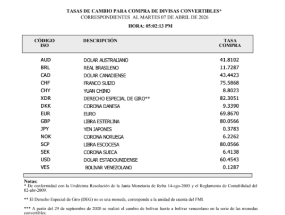 Santo Domingo. – El Banco Central de la República Dominicana fijó en RD$60.4543 la tasa de compra y en RD$61.0571 la de venta del dólar estadounidense al cierre del 7 de abril de 2026, valores que servirán como referencia para las operaciones cambiarias de este 8 de abril.